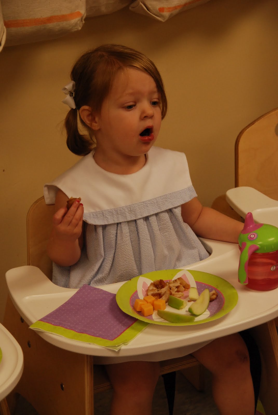 Last Wednesday Caroline had her class Easter party and egg hunt. This was her first egg hunt this year and I didn't know how she would do. It took her a few minutes to figure it out, but once she did she loved it!!